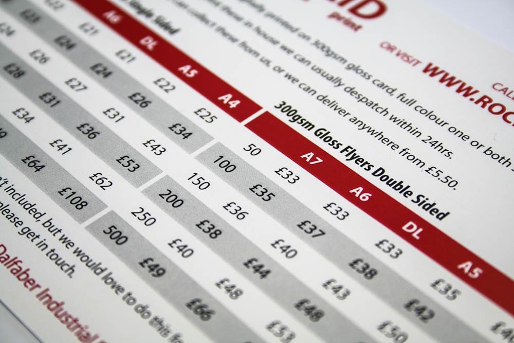 If you need leaflets, flyers or posters printed in quantities from 1 to 1000 then digital printing is for you, with minimal setup costs it’s extremely cost effective for short runs, and we can often produce your print you for you so that it’s ready for collection the next day. If you live a little further afield we can deliver to the whole of the UK, including the Highlands of Scotland from as little as £6 on a next day service. (Yes i did say including the Highlands).